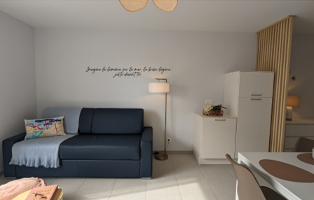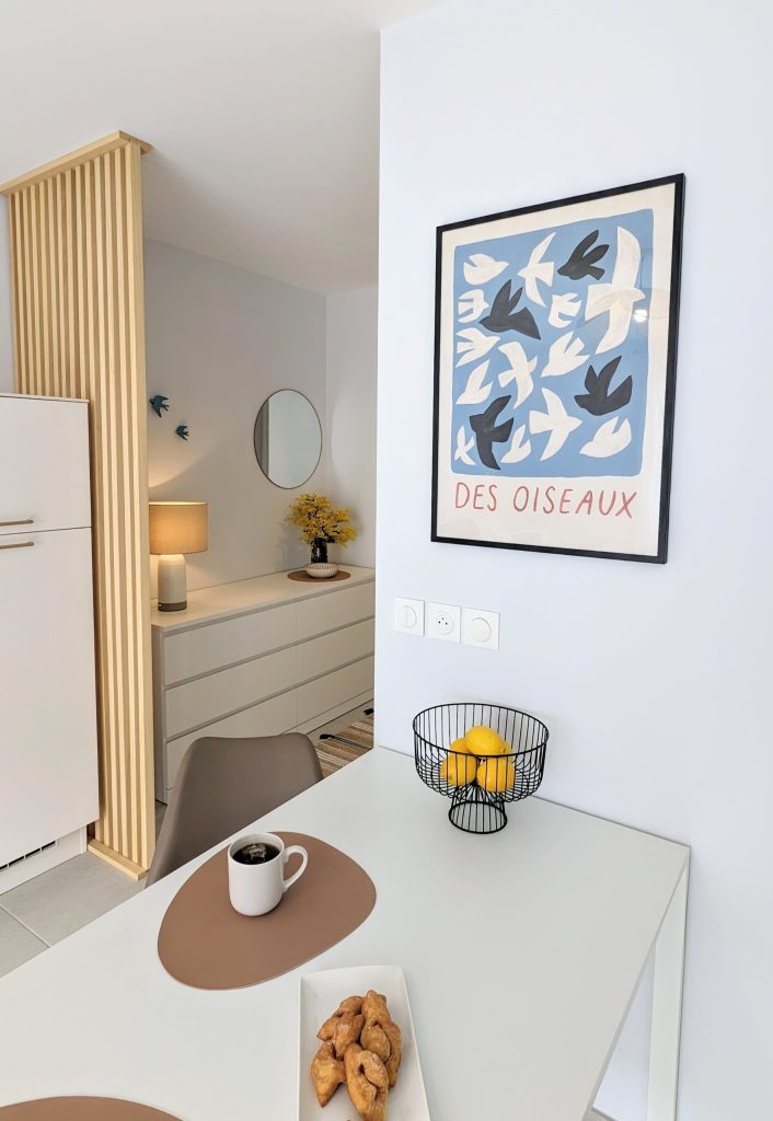 Cet appartement a été partiellement rénové, modification de certains sols, ouverture de la cuisine, mise en peinture des pièces, pour pouvoir accueillir en location courte durée 4 personnes confortablement. La décoration s’est voulue élégante et chaleureuse. Le projet a été travaillé pour que chaque pièce puisse répondre aux attentes des clients dans un soucis de bien être et d’esthétisme.