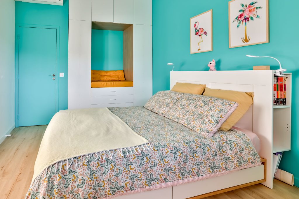 Transformer une chambre d’enfant en chambre d’ado colorée et fonctionnelle.